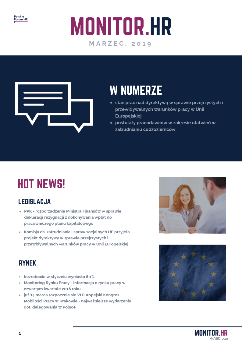 Zapraszamy do zapoznania się z marcowym wydaniem MONITORA.HR w którym przedstawiamy m.in. najnowszą inicjatywę pracodawców w zakresie wprowadzenia ułatwień w zatrudnianiu cudzoziemców.